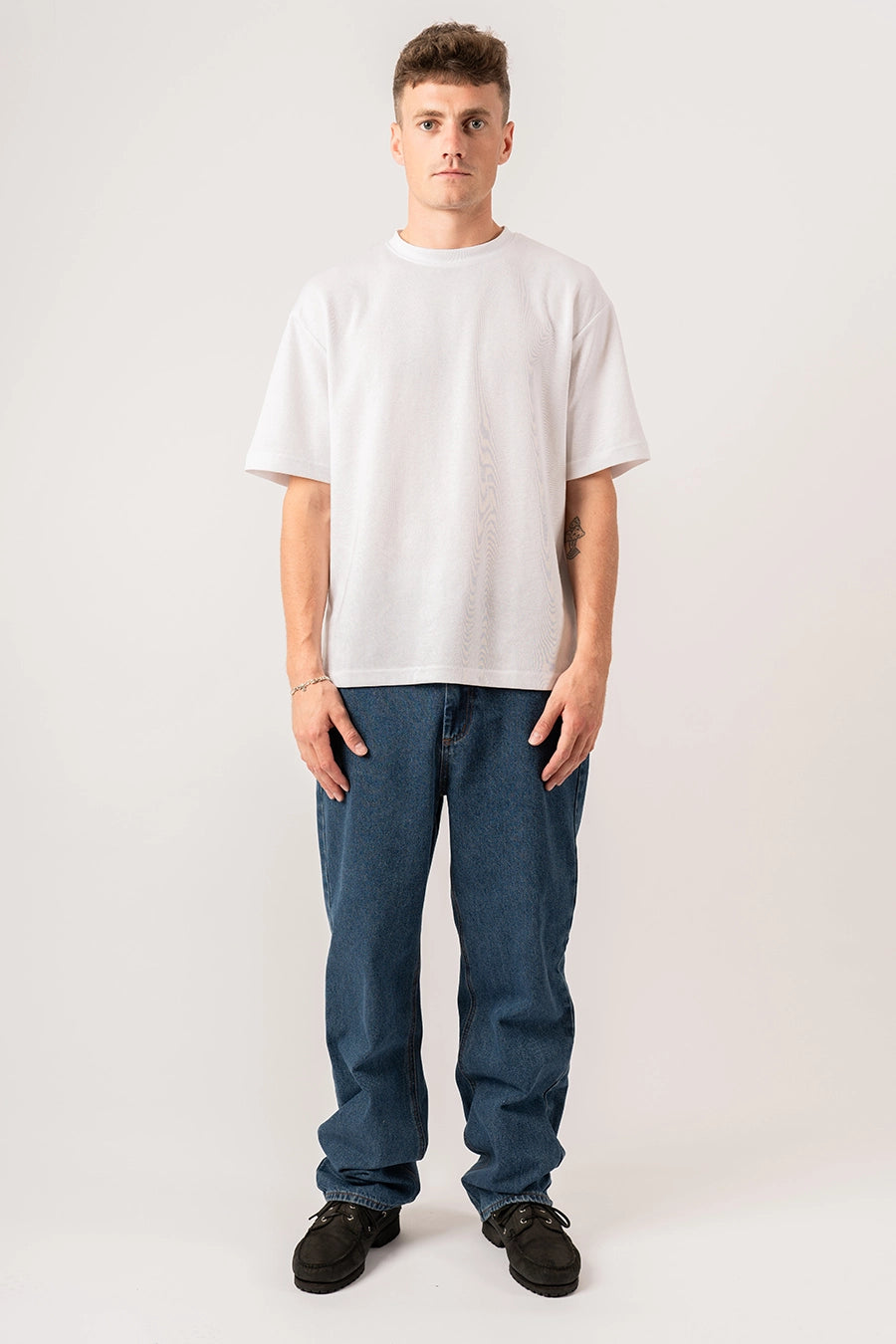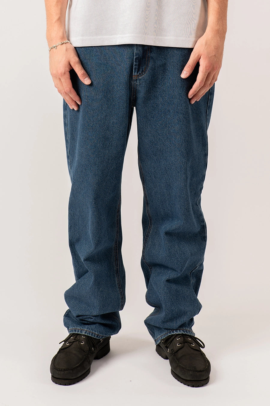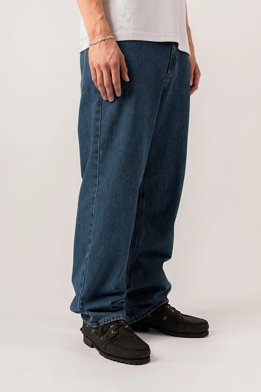 Denne model er vores bud på den perfekt baggy jeans. Modellen fåes i 3 vaske: Black, Grey & Retro Blue. Modellen er med indvendige elastik, så den kan spændes ind i livet.