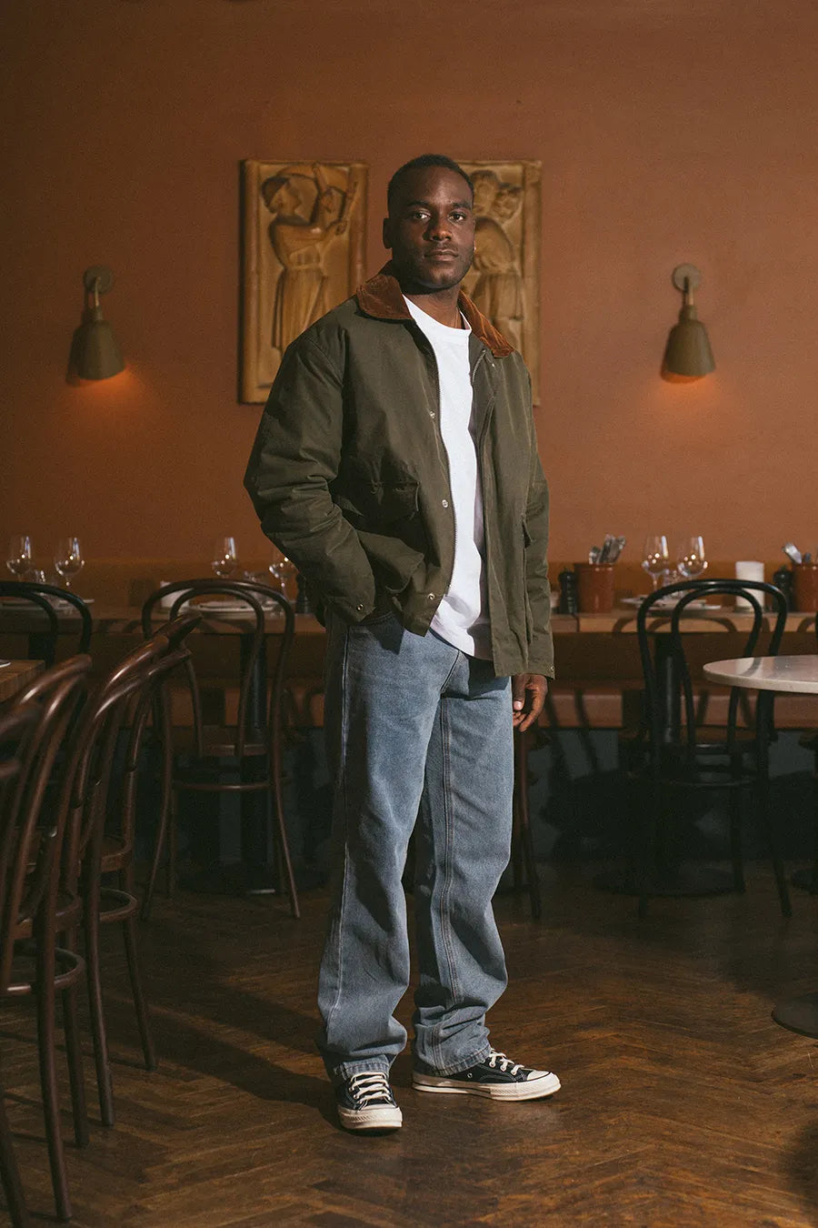 Modellen er 175 cm høj og har størrelse 30/32 på.